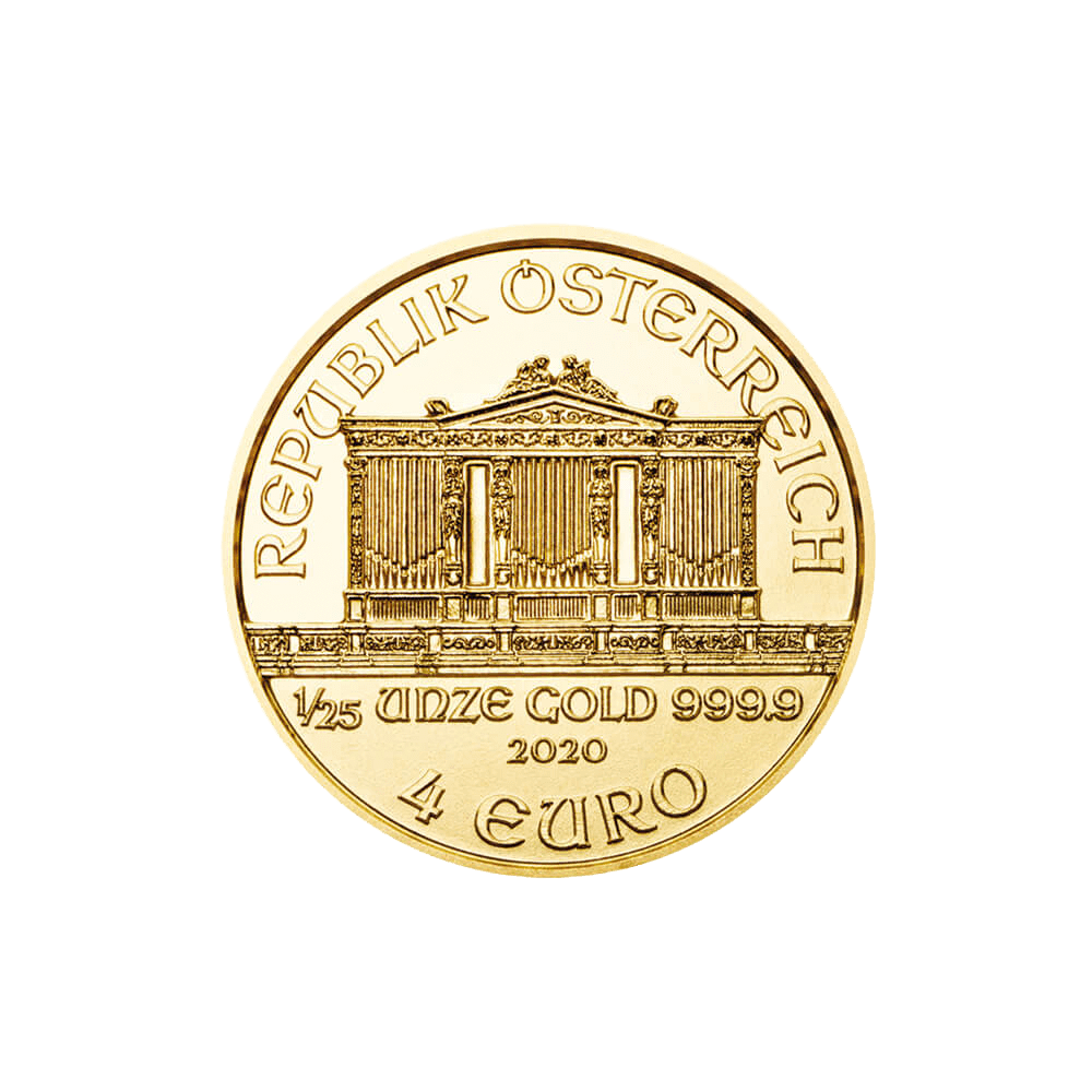 Moneta bulionowa Filharmonicy Wiedeńscy jest określana mianem najpiękniejszej monety bulionowej; uważana za arcydzieło sztuki numizmatycznej. Nazwa monety pochodzi od jednej z najbardziej uznanych orkiestr świata. Chętnie jest nabywana ze względu na wartość samego kruszcu, ale ceniona również przez numizmatyków – kolekcjonerów. Złote monety Wiener Philharmoniker są wybijane ze złota próby 999,9. Pierwsza moneta o masie 1/25 oz. ukazała się w 2014 roku dla upamiętnienia 25. rocznicy monety Wiener Philharmoniker.